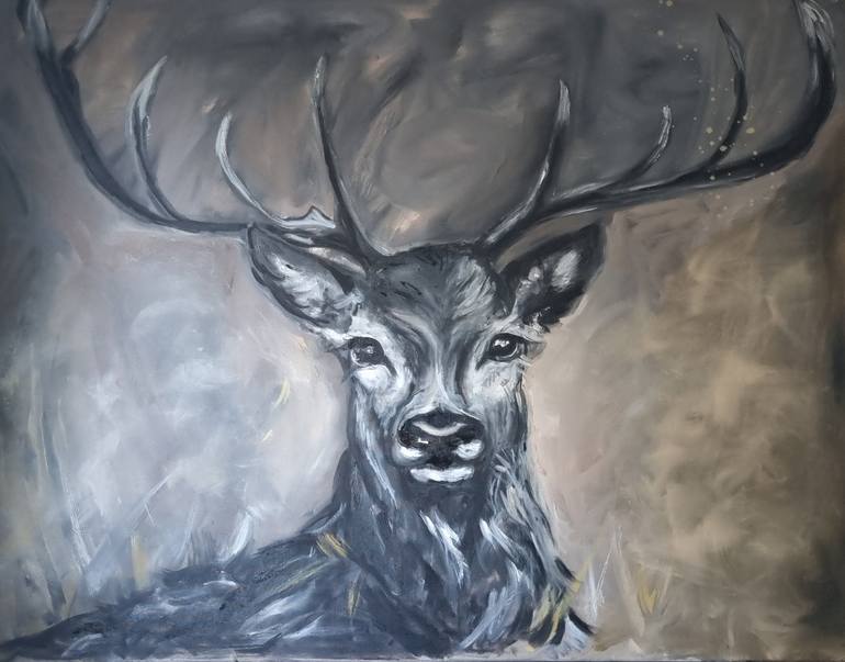 Oil painting on canvas 90×70 cm, varnished. Original work. The symbolic meaning of the deer is associated with the symbolism of the Tree of Life due to the resemblance of the deer's antlers to the branches. As Henri-Charles Puet notes, it is also a symbol of the cycles of rebirth and development. I...