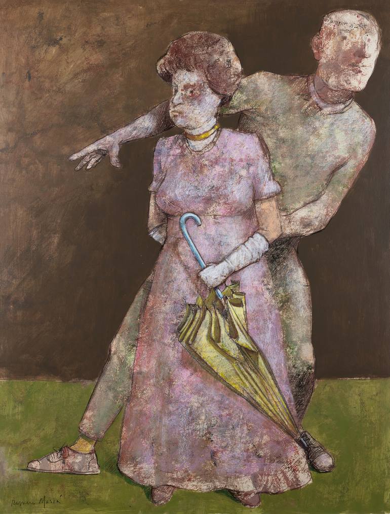 This work belongs to the series "Pintujos", which is a word composed of two words in Spanish: painting (pintura) and drawing (dibujo). It is a figurative series in a surreal dream world. Strange characters amid absurd situations and black humor. It is a mixed technique made on paper glued on wood. ...
