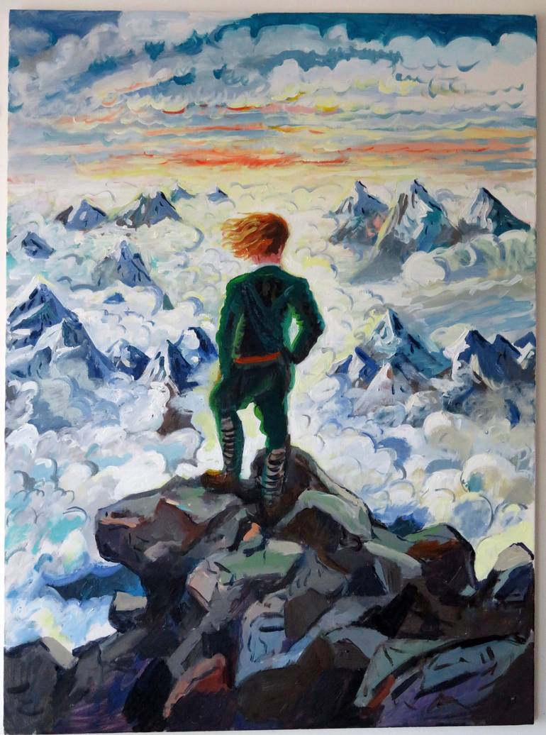 this is part of a new series of paintings that are mostly made up, but occasionally based on a recognizable image as is this one.