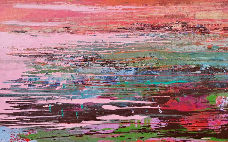 Painting: Oil on Canvas. Large abstract Stretched on a 4 wooden frame. The sides are painted too. Primed with high quality primer. Signed, dated on the back. It was painted with original, professional oil paint on my work energetic dynamic creativity is stimulated and the mood for positive thought...