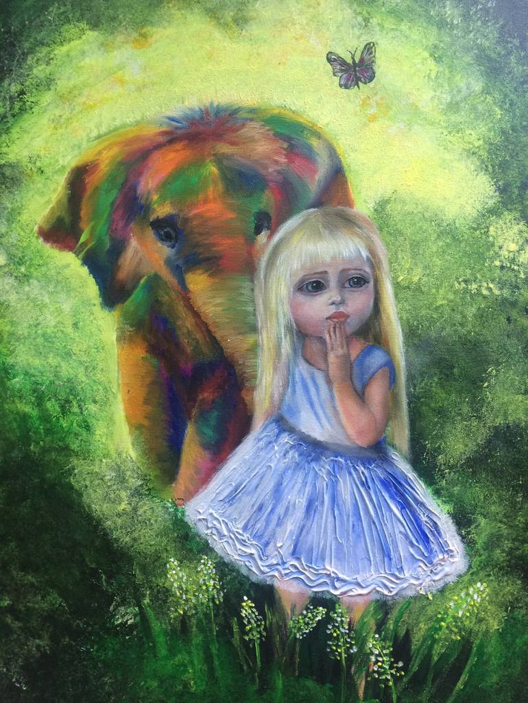 The work is inspired by the vitality. Childhood moments, when we dont care about the world and problems, we just enjoy life with feelings and joy . This picture shows the purity of the girl and her imaginary friend.
