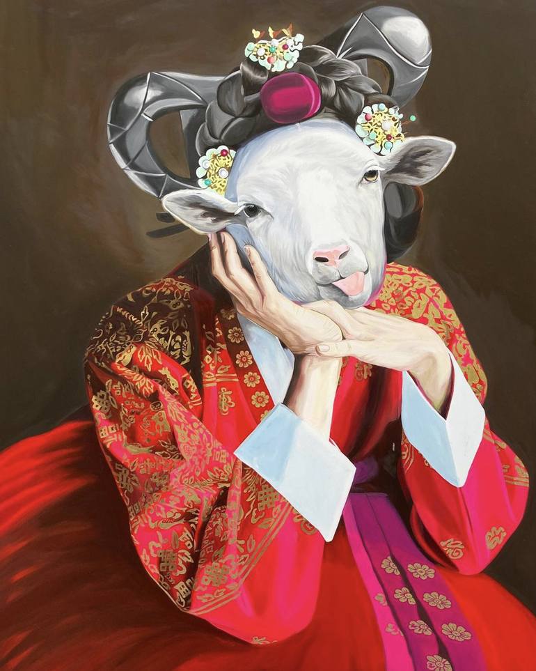 I explore history as a lens to examine emotional tension that shape belief and power. Rooted in Korean symbols—ritual garments, divided lands, and staged political gestures—my work moves beyond specific events to focus on the psychological and spiritual states that emerge within them. Rather than documenting history, I construct visual scenes where longing, conflict, and hope coexist. It function as emotional myths—spaces where personal memory, collective experience, and symbolic imagination intersect. Across all series, I approach painting as a way to reveal how human vulnerability and desire persist within systems larger than ourselves.