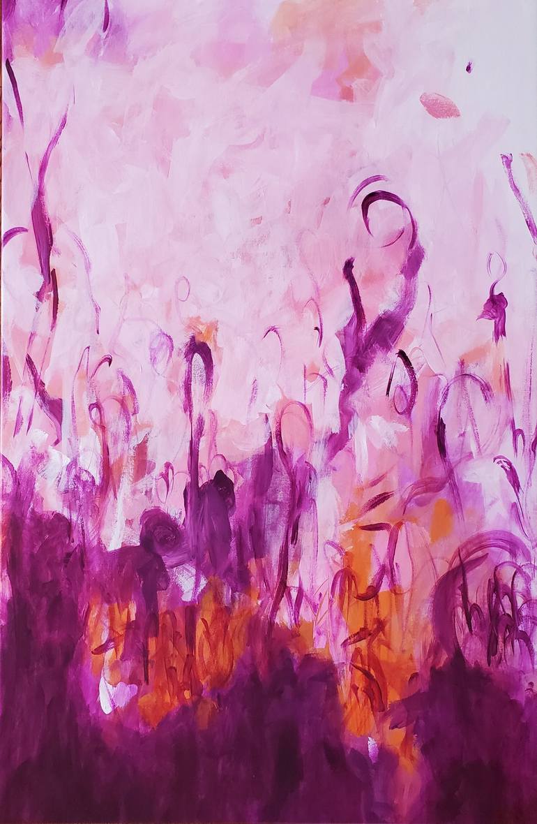 Imagine music and a light breeze in the air. 'There's A Song In My Heart' is filled with anticipation and hope. Painted while enjoying the cry of a soft violin, this work is spontaneous and romantic. This work is Ready to Hang, signed on the back, and will be accompanied by a certificate of authent...