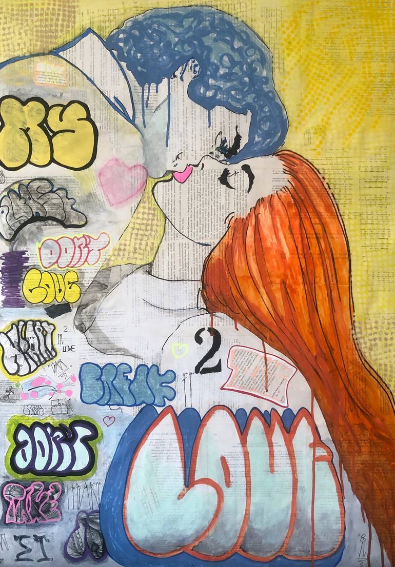 I'm a Brazilian mixed-media artist who likes pop culture, urban and vintage aesthetics. My work is primarily focused on collages made from discarded materials like office paper, old book pages and cotton textiles that I use as supports for my paintings. These materials allow for rich textures which give me te ability to mimic the impression of old walls with paint, poster fragments, and graffiti that have accumulated over time, in order to convey the influences of my art, mostly the pop art of the 1960s, the graffiti of the 80s/90s and the recent street art movement. Sharing beauty and upholding what is true and good are my goals, hoping that my art may uplift, bring joy and energize those who value my artworks.