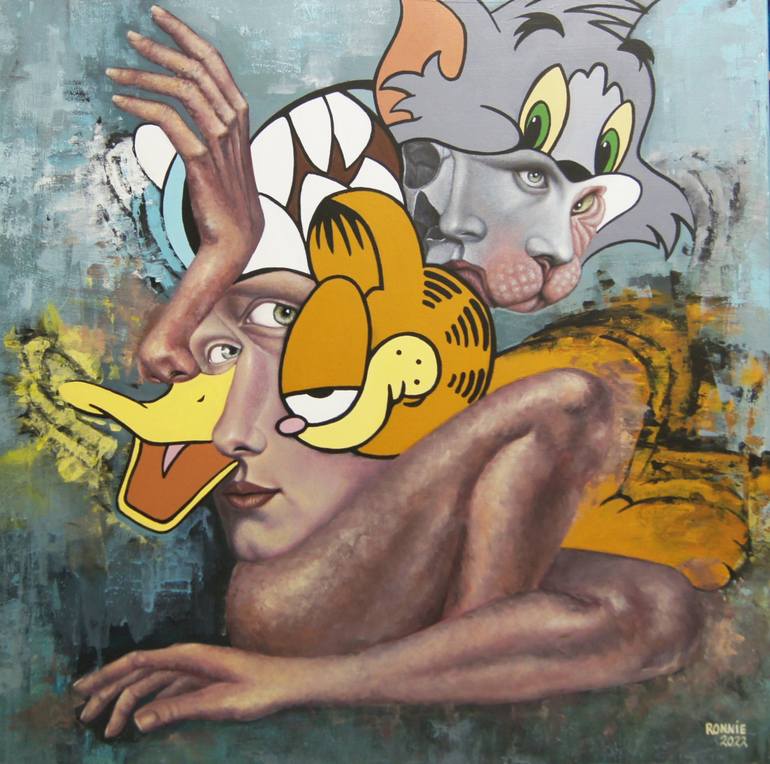 Ronnie Jiang was a fashion designer who launched her artistic career in 2013 in France. In 2019 she started to work on a series that she called Déstructuralisme Figurative, she focuses on the evolution of the "form", the destructuring of bodies and faces in which joyful anatomy is built and deconstructed in the footsteps of cubism. The geometrized but still realistic fleshly fragments identify without flaws and are released in their contortions. In Ronnie's work, we can detect a few characters from cartoons mixed with faces or body parts. These new disfigured, strange, and imposing creatures show a certain spatiality of forms. Their juxtapositions induce the possibility of a new story. Ronnie is deconstructing to reconstruct to discover a new form and new story.