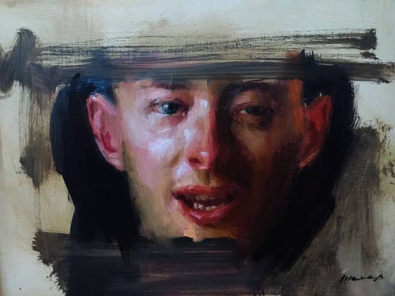 A portrait of Thom Yorke, inspired in the video clip "No surprises" Oil on canvas, 40x30 cm (16x12 inches) Signed Ships rolled in a tube