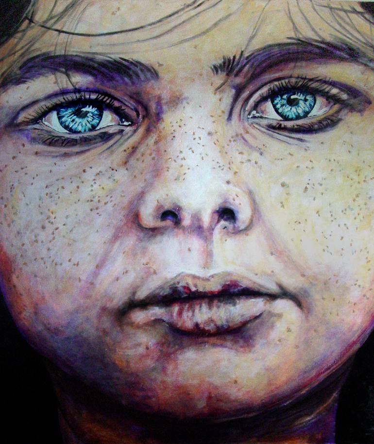 an original large scale portrait, 64 x 78 inches. This is part of an ongoing series of direct eye to eye engagements in paint from canvas to viewer asking questions of identity and self perception in a world obsessed with the duality of voyeurism and surveillance.