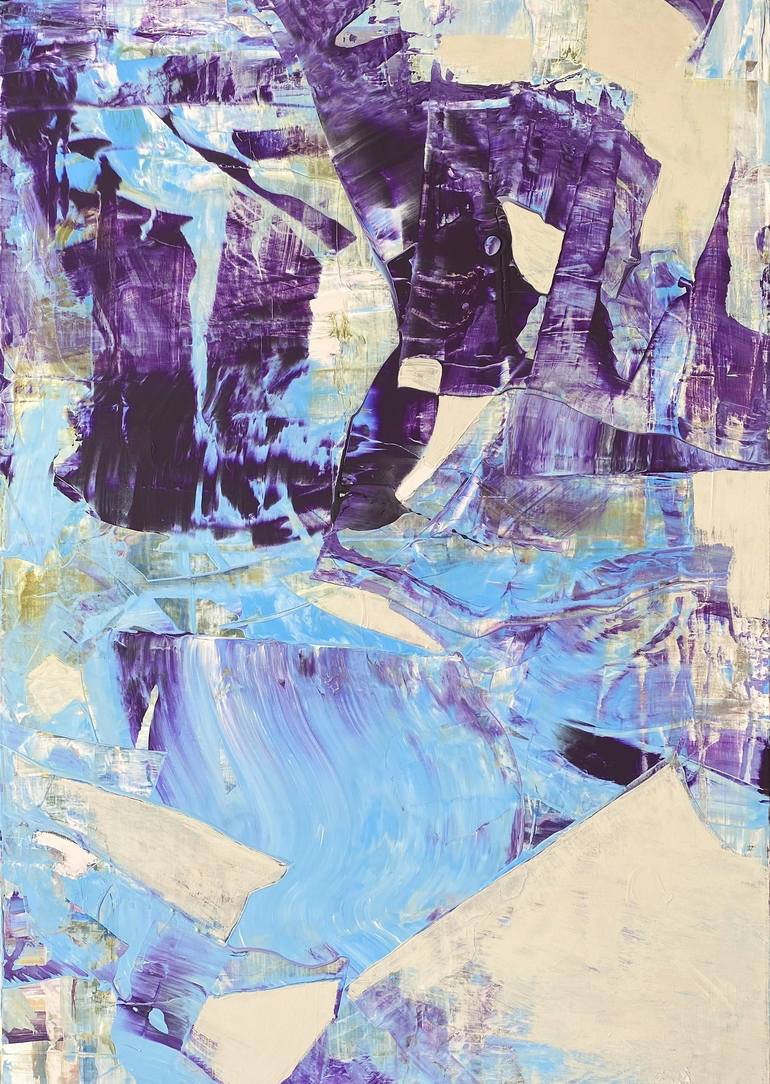 Original painting on stretched canvas named „Thousand pieces“. Dimensions: 70cm x 100cm. Art work has been painted by hand on the high quality cotton canvas, delivered stretched on the wooden frame, sides are painted with black. Colors: Beige, Bufff White, Lilac, Grey, Blue, Light Blue. Painting i...