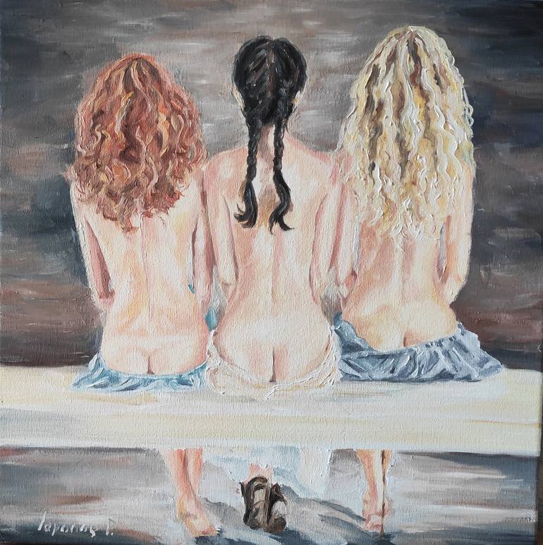 Three beautiful naked girls, three graces will decorate your home and delight your eyes Work signed by the author, handmade, high-quality oil paints and canvas. A great gift for any occasion. Made with love for a woman. The painting is a wonderful gift! Handmade!