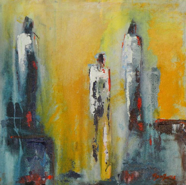 TITLE: Three Pillars SIZE: 20 x 20 inches MEDIUM: Acrylic/ Oil SUPPORT: 1.5" Deep Gallery Wrapped Canvas, Sides Painted - Ready to Hang SERIES: The Interaction Series ARTIST SIGNED: Yes - Front and Back COPYRIGHT: Maintained with the Artist CERTIFICATE OF AUTHENTICITY: Yes - Signed by Artist This i...