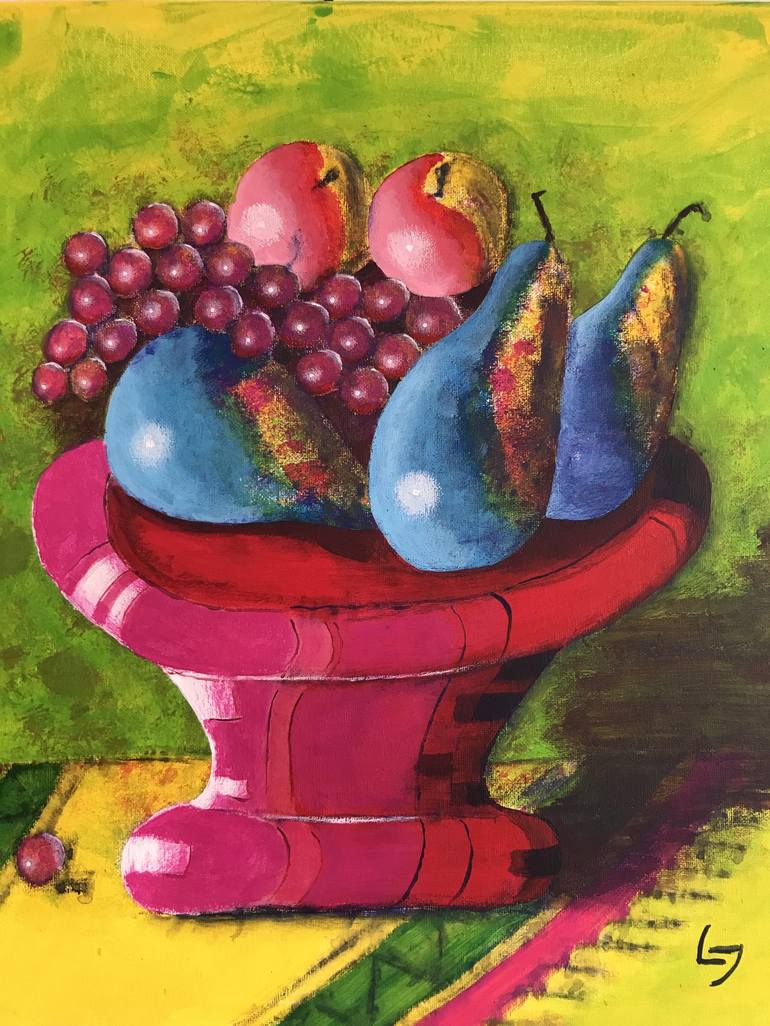 Fruits. Still life. The paintings in this series are painted in mixed media. First, a bright background is created, then the shapes and sizes of objects are found, and the picture is completed. Then, with a special acrylic pencil, shadows are applied. On a specially created bright background, it is ...