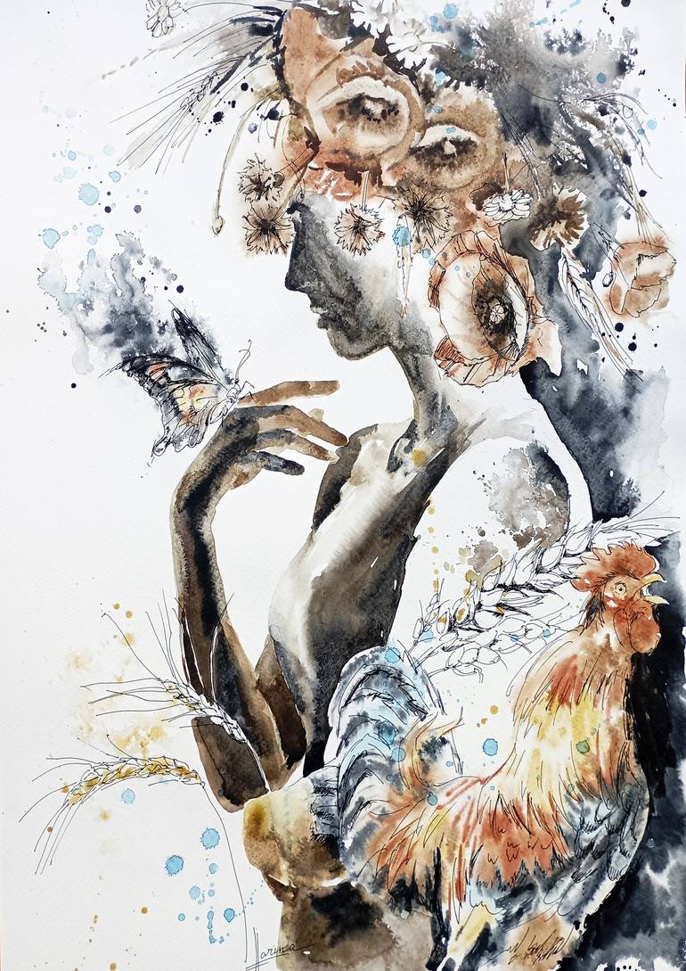 Hello ! I am an artist from Ukraine. I draw and painting from early childhood. Creativity - my whole life. In my work, I am inspired by the world around me: nature, the female image, the architecture of cities, the sea. I like to express my understanding of the world and what is happening through symbolism in paintings. In my paintings I often use stylization, ornaments, collages of figures, flowers, architecture. The female image is the most important for me in painting. In my work, I am inspired by the surrounding world: nature, the female image, the architecture of cities, the sea. I like to express my feelings and understanding through symbolism in the paintings. I love watercolor for its elusiveness, danger, unpredictability. I find these traits in the female image as well. Watercolors are delicate, unpredictable, you never know how the paint will lay on paper, how the colors will flow and mix. I love to create series of paintings that inspire me: woman, flowers, Renaissance, Impressionism, Art Nouveau. Watercolor is my whole life! It is light, airy, momentary - as the paint lay down, so it will be. Therefore, when you create a picture, you don’t fully know how it will end up. I often draw tender, vulnerable female images, as I myself have been subjected to sexism, humiliation, pressure due to the fact that I am a woman. I myself fought for my freedom of expression, I am proud that I am an artist. With my painting, I inspire people to search for beauty around us. I take part in art exhibitions. I never expect inspiration in my life! It is always with me. My motto is beauty, light, harmony in every work! I have been painting since birth. I studied for many years and still do not stop improving in painting. I always said that I would create under the bombs. And now this time has come. And yes, I continue to work. Only now I'm sitting with a brush, and inside I'm squeezing from anger, pain, resentment. Many of us fight in different ways: someone with a gun, someone with a word, someone with creativity. I loved symbolism and now I am trying to convey the bright image of Ukraine with gray, dark colors. .larina.art
