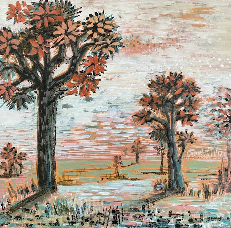 Inspiration from joshua tree that inspires me a lot I like it's cactus exotic look ! That tree brings me back to Mexico where I lived 11 years. This landscape is painted from my imagination