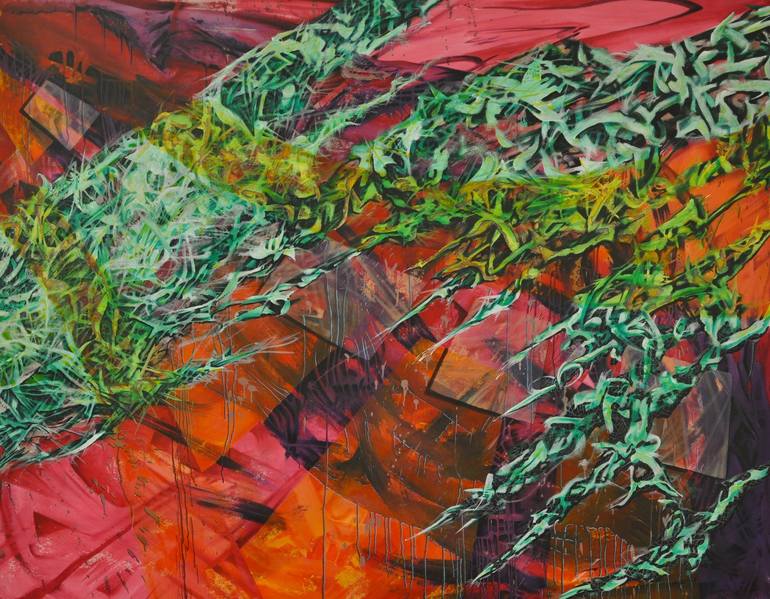 Red on canvas with green
