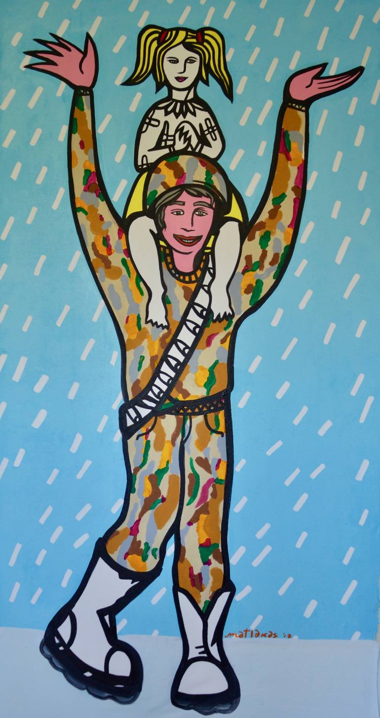 This work is made thinking of the sensitivity of adults towards future generations. Here a military decided to save a child instead of going to war, consciousness of humanity raises even in the most difficult times the world faces. This painting on canvas will come without stretcher or frame. If yo...