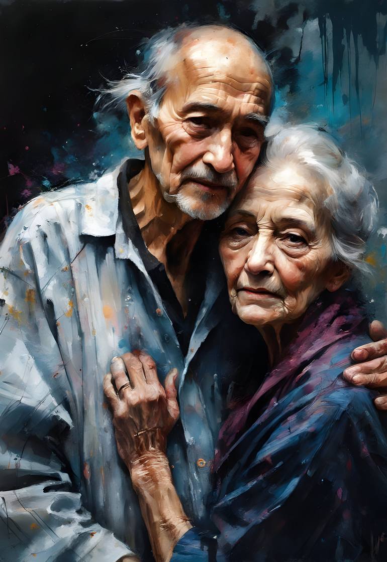 This exquisite oil painting captures the enduring bond and timeless love shared by an elderly couple. The artist skillfully portrays the depth of their connection, showcasing the wisdom and affection that have grown over a lifetime together. With masterful brushstrokes and a keen eye for detail, th...