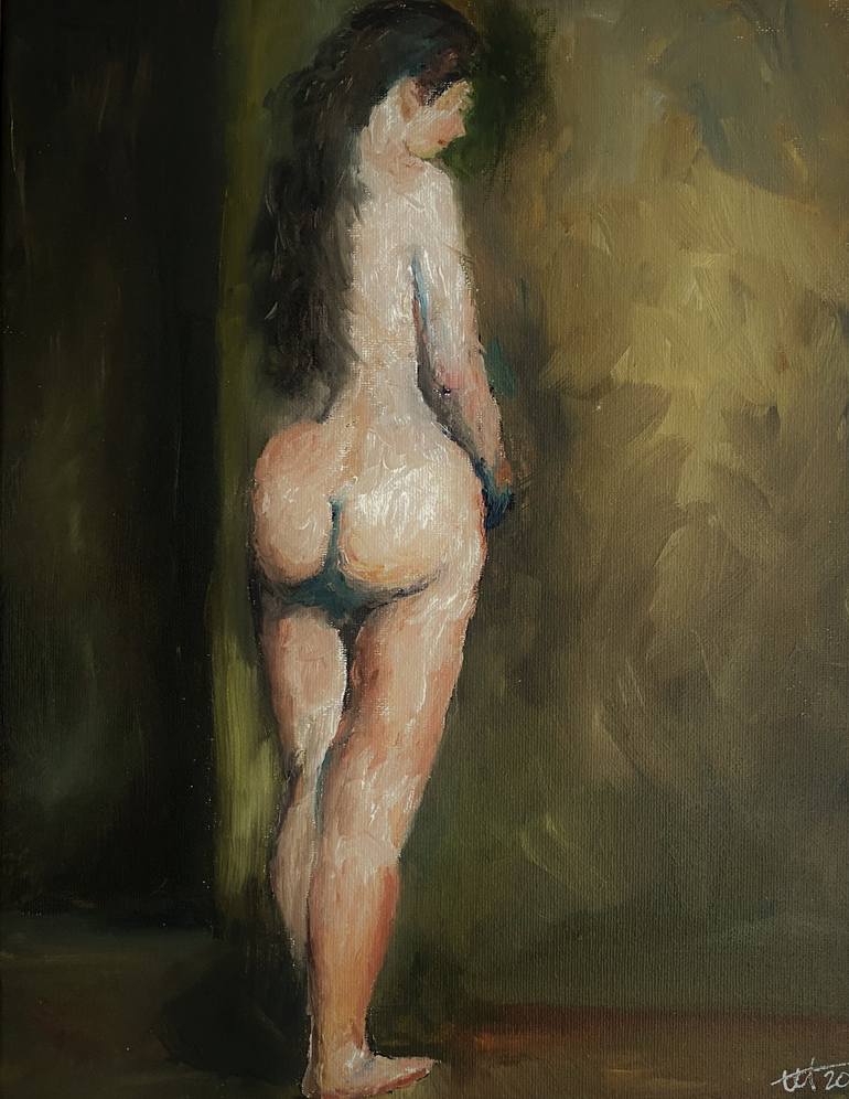 Classical Nude Female Figure Art No. 3 - standing. Major influence is the work of the French Impressionists, especially Courbet and Degas.