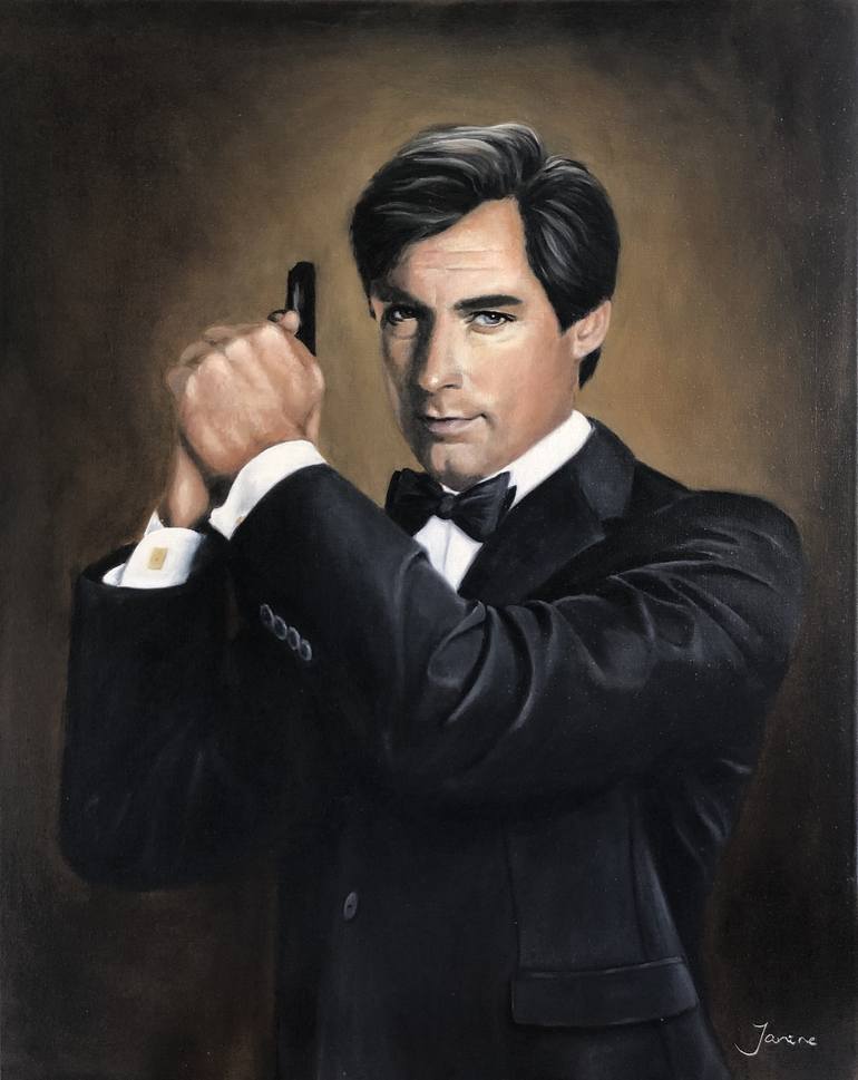 Timothy Dalton is the third of the James Bond series I've painted. The James actors are the perfect persons for my classical portrait style for they are handsome and stylish with a classical touch.