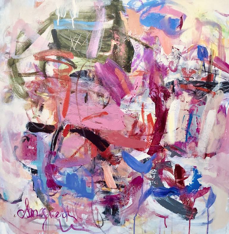 A CALAMITY OF COLOR IN THE VERY BEST WAY.....Sandy is the consummate artist. Using vibrant palettes of vivid hues, her work embodies a fresh, feminine, and passionate perspective. Whatever she does, she does it colorfully. Sandy consistently endeavors to capture the essence of her subjects, be it the pose of a fashionista, a lively beach scene, a coquettish shoe or a inquisitive Lamb. Along with a representational approach, Sandy's push toward abstraction and non-figurative renderings signals an evolving signature style; the themes and provocative palette have remained constant, but she has embraced a new manner of expressing them. With energetic mark makings and gestural flourishes of delight, she manages to keep her artistic voice fresh and full of ephemeral elements of enthusiasm and liveliness. Painting is her pulse and many of her paintings POP with provocative color and flirtatious style. Sandy looks to and through all her daily experiences as sources of inspiration. Painting, gardening, decorating, and currently working as a free-lance make-up artist for Chanel allow her to be creative. Festivity and joy are the foundations of Sandy's work, ones which she celebrates not only with each viewer, but also with her furry critics and studio mates, Tootsie her dog and his cast cousin Maurice Matisse. "Painting is not just a hobby, it is vital to my life. Summer is my mirror and fashion is my muse. My palette is filled with the delicious colors of summer. The reaction to my work is joy and happiness. I wouldn't have it any other way. I'm excited and inspired by the welcoming world that surrounds me, an islands hydrangea, a stretch of sand and beach umbrellas, a fashionable figure and, yes, all kinds of animals. This is how I choose to create my life and my art".