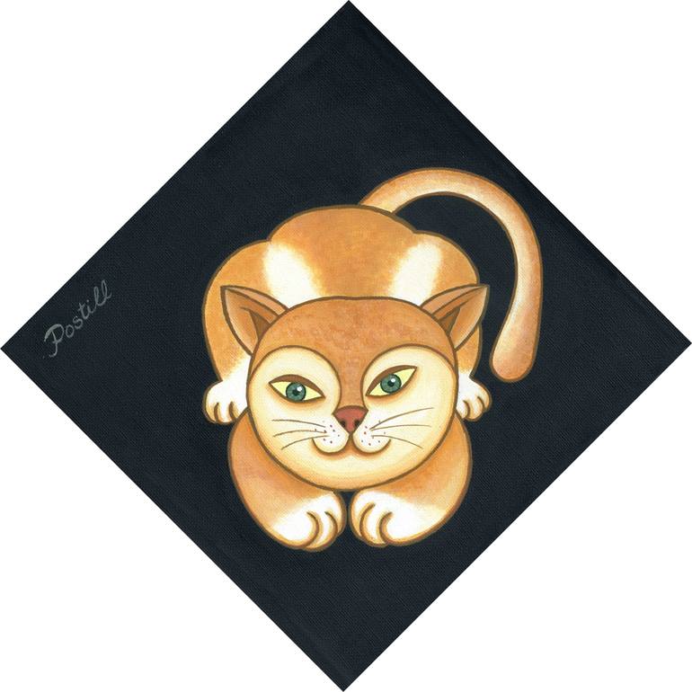 Naive style (folk art) painting of a kitten, painted mainly to amuse children.