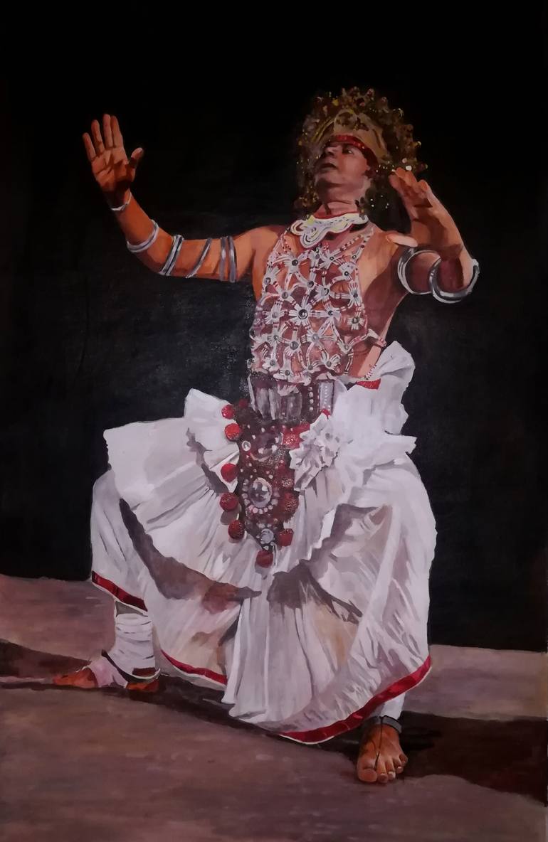 Motivation and inspiration for the creative expression comes only from above. This thoughtful painting of a cultural dancer is a perfect portrayal of preparation before the performance. His pose sketched exquisitely from an unusual angle capturing the emotion and body language of the stance. The cr...