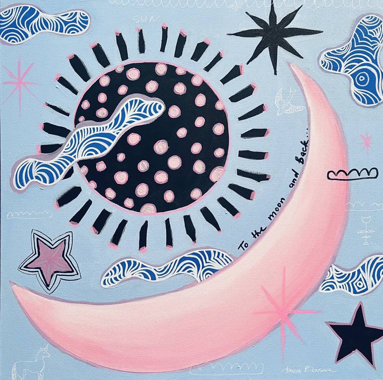 “To the Moon and Back” The size: 24 x 24 x 0.8 in Material: Acrylic Paints on Canvas The artwork is sold unframed My source of inspiration is the natural world, especially the depiction of wild animals, flora, and fauna. I portray nature, where plants and animals form a symbolic image of the whole...