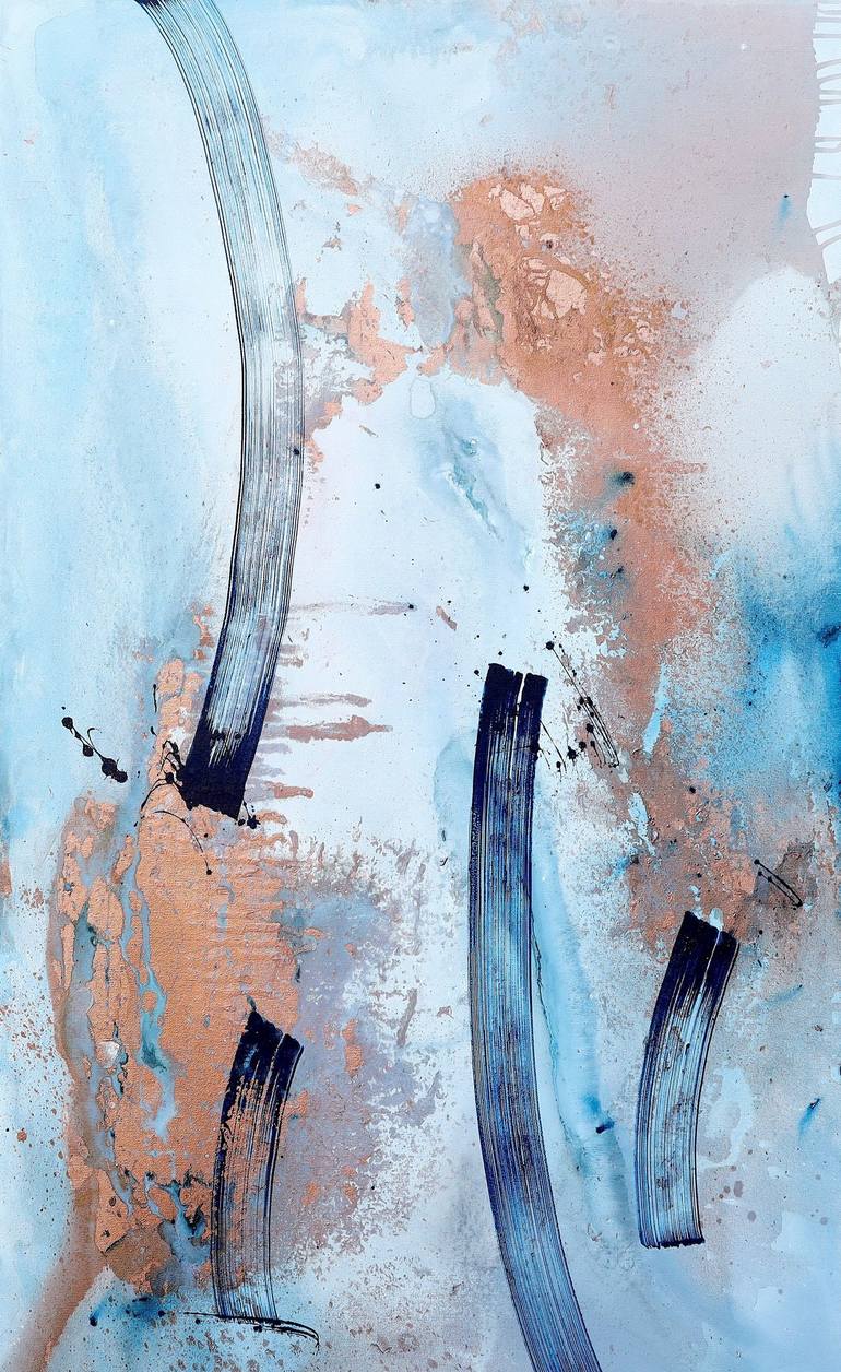 TO THE MOON Painting Size: 30 x 48 inches In " To the Moon", colors blend and overlap, inviting the unexpected into the creative process. This approach fosters those “aha” moments, where each interaction between hues and textures reveals a unique visual narrative. The painting embraces the intuiti...