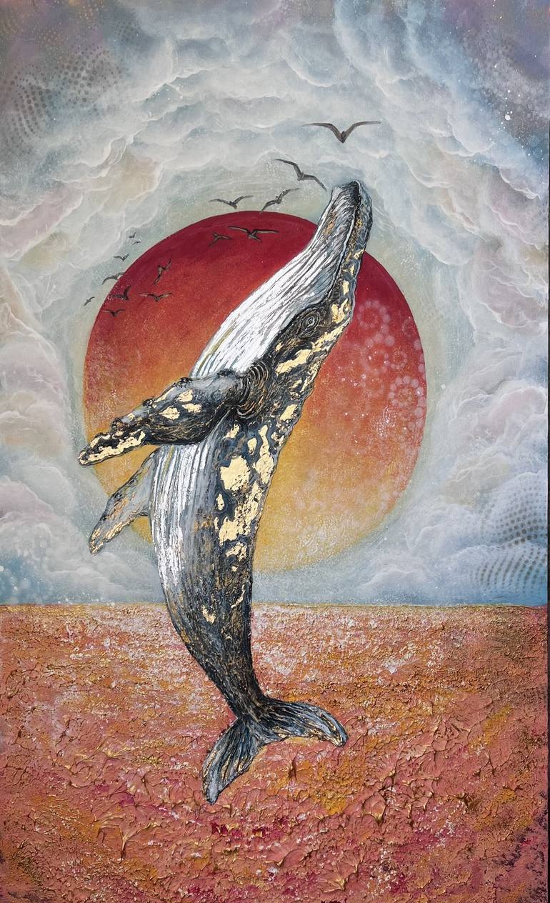 Gold and silver smoothly gliding over the purple whale creates a sense of mystery and majesty. In this image, the elemental forces of nature and the human desire for harmony meet. The painting is not just a reflection of reality, but an invitation to reflection: the whale, as the embodiment of ancie...