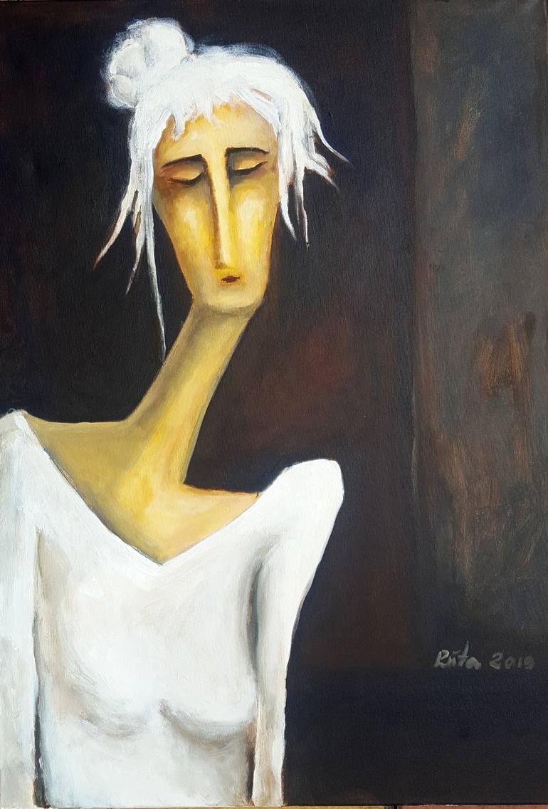 I am a figurative artist whose work centers on the complexities of human connection, with a particular emphasis on the feminine image. Through oil and acrylic painting, I explore the subtle dynamics of communication — the unspoken language, the pauses, the glances, the gestures that speak louder than words. I was born and raised in a small Lithuanian town. My first encounter with painting came when I discovered my father’s old watercolor set — a moment that felt magical then and still feels magical today. I graduated from Vytautas Magnus University in Kaunas and the Vilnius Academy of Arts with a degree in Art Critic, History and Theory. Since 2006, I have been actively involved in the art world, participating in exhibitions, writing about art, and organizing plein air sessions and creative workshops. Over time, my focus shifted from writing about art to creating it – immersing myself in the tactile, intimate process of bringing a painting to life. After moving to London, I began to concentrate on portraiture and figurative art. I paint contemplative figures whose gestures and expressions hint at the complexity of human relationships. Through muted palettes, soft transitions of color, and simplified forms, I strive to create a quiet, meditative atmosphere — one that feels timeless and suspended between reality and imagination. Rather than offering complete narratives, my paintings invite viewers into moments of pause — spaces where empathy, tension, and silence coexist. Ultimately, my practice investigates the visual language of human connection — how composition, gesture, and spatial tension can articulate what remains unspoken. By reducing detail and emphasizing form, color harmony, and rhythm, I aim to construct spaces where viewers can engage not only with the figure depicted, but also with their own emotional responses.