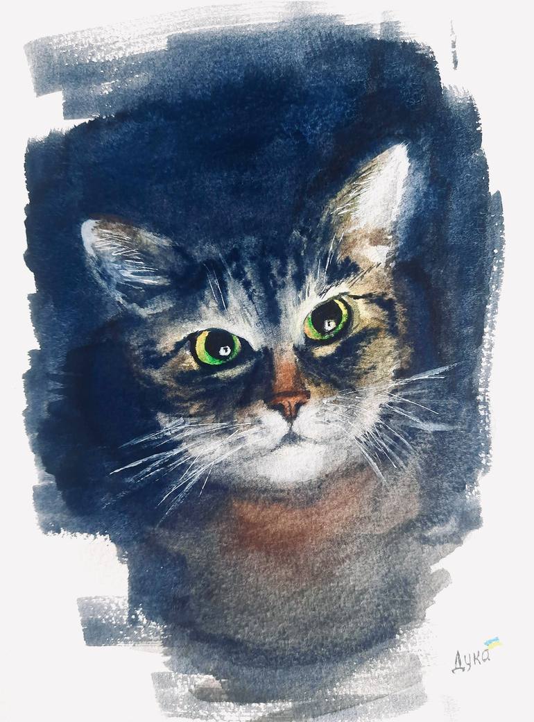 Original Watercolour Painting "Tolik", 2023 Series "Our Little Friends" Unframed, 17,5х25 cm (6,9х9,8 inch approx) The painting was painted on the day when I received the news that my beloved cat had died. Tolik was with me from the first day of the war. This is a memory of all those animals that ...