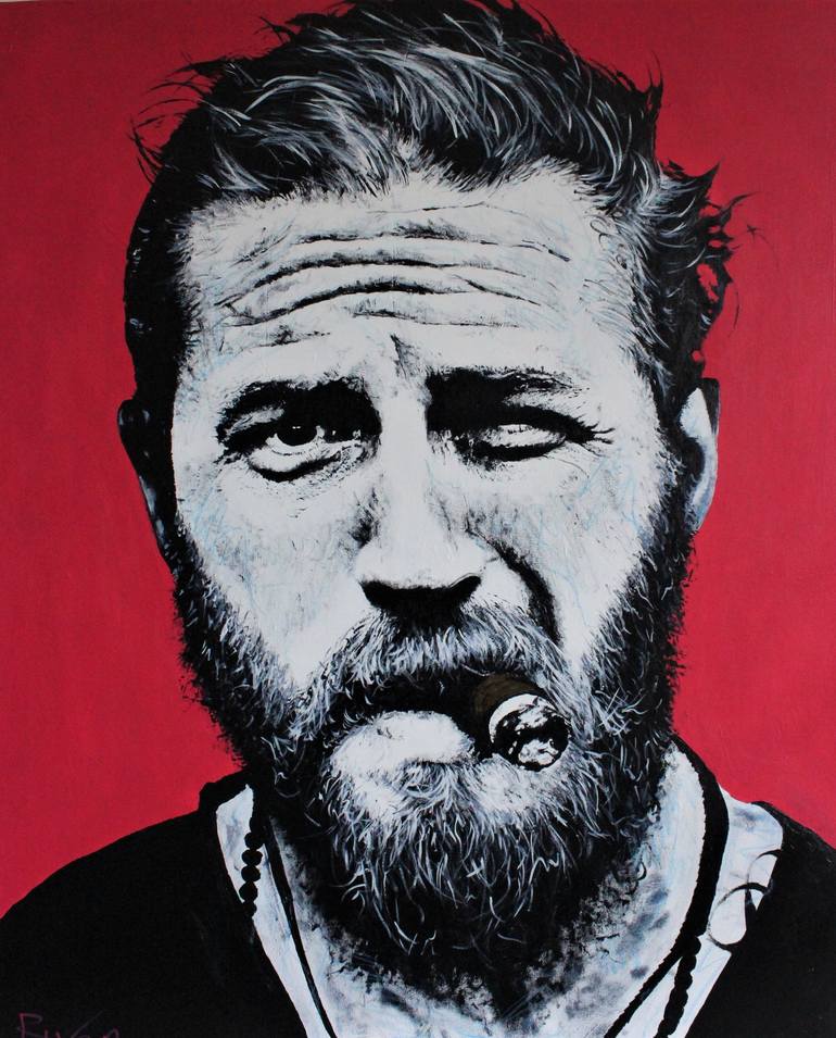 The bright, vivid, contrasting colours express the actor in a light not seen before. The expressionistic style evokes a lively response, while the actors sentimental frown adds to the paintings depth, drawing you in while you notice elements to the painting you missed at a first glance.