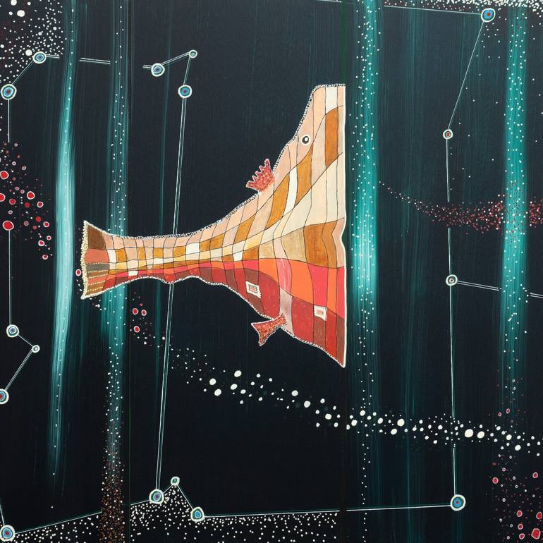 A fish called Tomas has ended his diet... no, yes its true in my paintings. I like to mix my fantasy style with a title that gives the observer some more to thing about. It's often houses on clouds but this time a fish. We will se what will happen next.