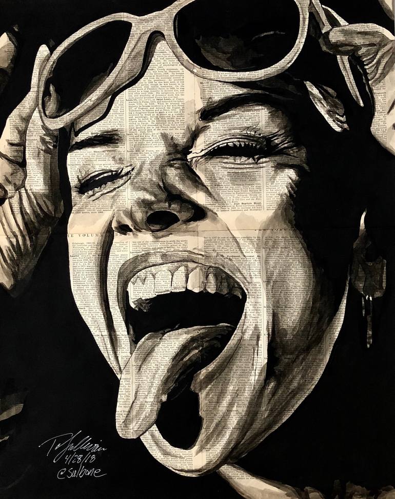Sulbone is Tom Sullivan. Sulbone (pronounced sull-bone) is the nickname Tom received in college that stuck. He is a self-taught artist that began expressing himself through art in his forties -- a late bloomer. He could be referred to as an "emerging artist," one with no formal training but a compulsion to create; one who NEEDS to draw/paint as a creative outlet and form of expression, with the goal of connecting with others through moving and passionate art. Although he initially started drawing in pencil and then ink using crosshatching for shading, Tom now almost exclusively draws/paints using India ink on vintage paper. The paper may be old dictionary pages, sheet music, maps, etc. Most of the paper is 100 years old or more, making each piece he does a unique juxtaposition of the past and the present -- creating new out of old. The pages are repurposed to bring an emotional connection to his art. The pieces range in size from 8x10" to several feet in size. Tom is married to his loving and supportive wife, Angie, who is his inspiration and a patient and accepting soul. Tom and Angie have two sons, Riley and Christian, 23 and 19 respectively. They live in Lincoln, Nebraska with their two Great Danes, Seamus and Finnegan.