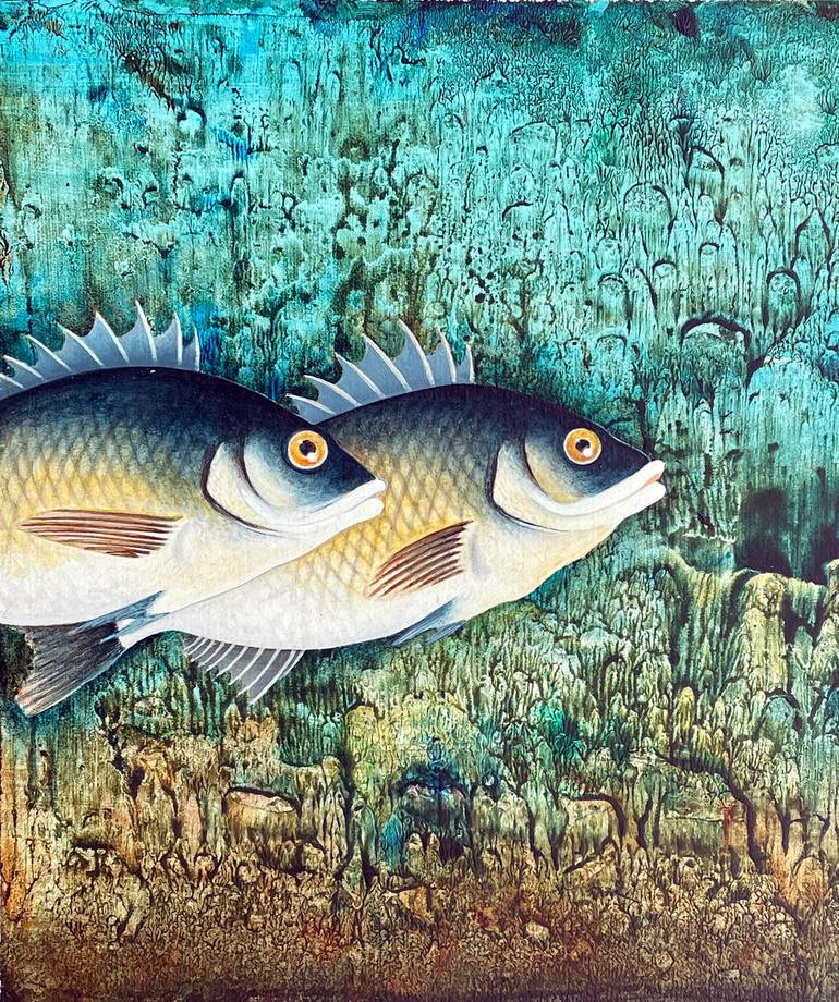 This is from a series of paintings combing both abstraction and realism. I start with an abstract base created using a technique known as decalcomania. This involves putting very wet paint onto a smooth and resistant primer. The paint is then pressed against the surface using a variety of materials,...