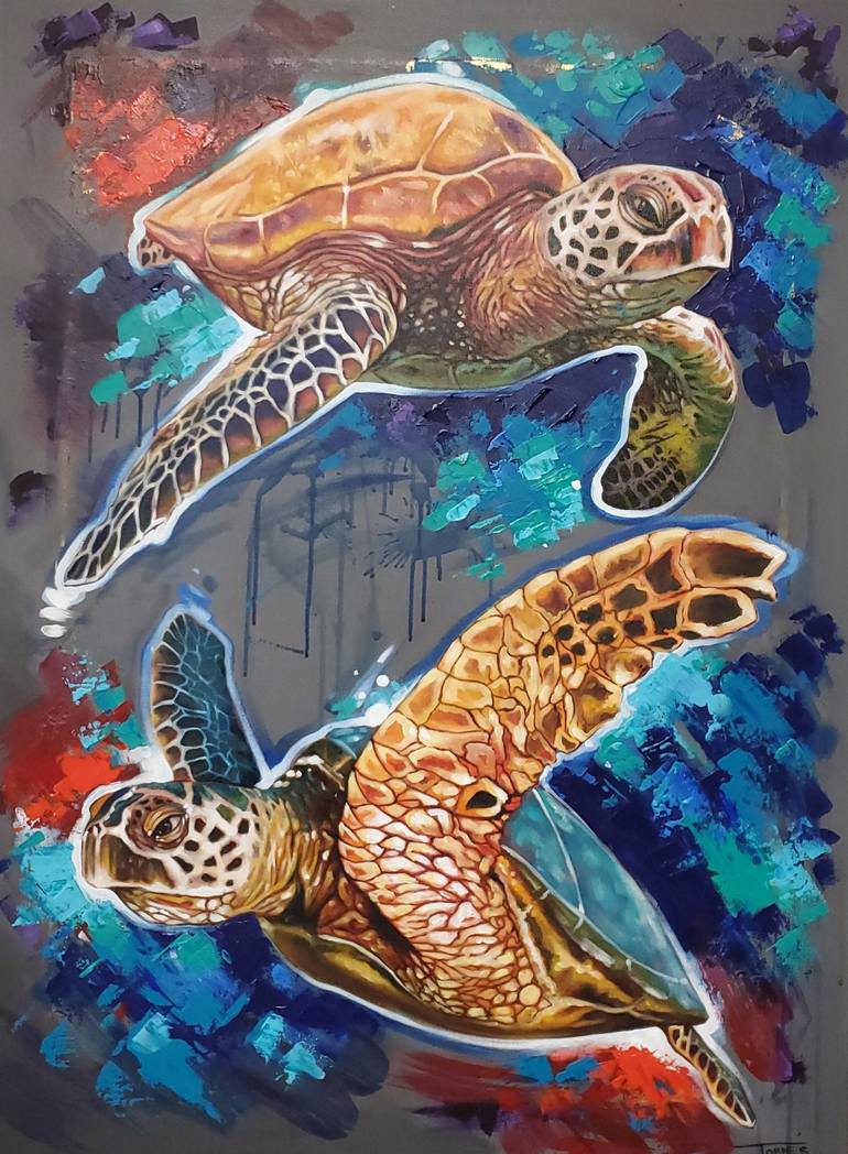 Esta Obra surgió de una manera espontánea y muy suelta en la manera de la solución pictoricamente...pero nunca dejo de perder esa frescura,ligereza y belleza... Nací en Cuba en un lugar costero y todo lo que viene del Mar siempre me cautivo y me sedujo,las tortugas me llaman mucho la atención por el...