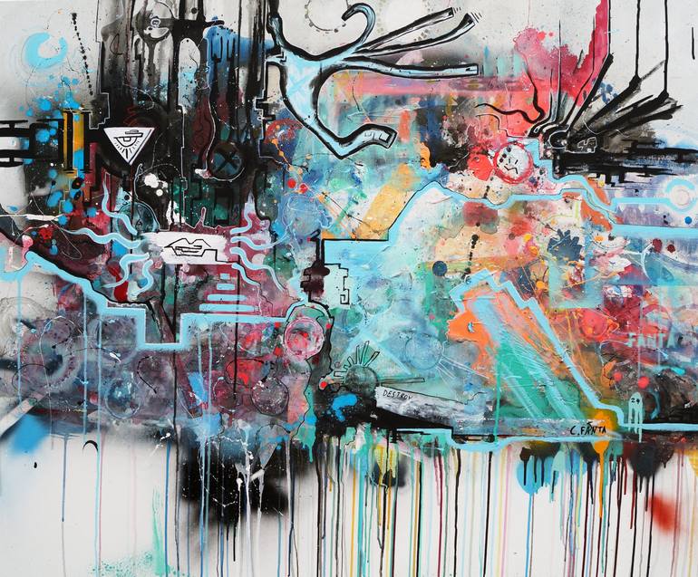 Am I a body or do I have a body? With eye-catching colours and different techniques of painting Captain Fanta creates expressive works. His abstract portraits allow most diverse emotions, while the eye of the contemplator is jumping from one edge to another. One time they are silent observers, the other time they tell you a story of their own world. You can find critical, philosophic trains of thoughts in his paintings and sculptures. For his art shall not just be decorative, but kick you and get your thoughts rolling.