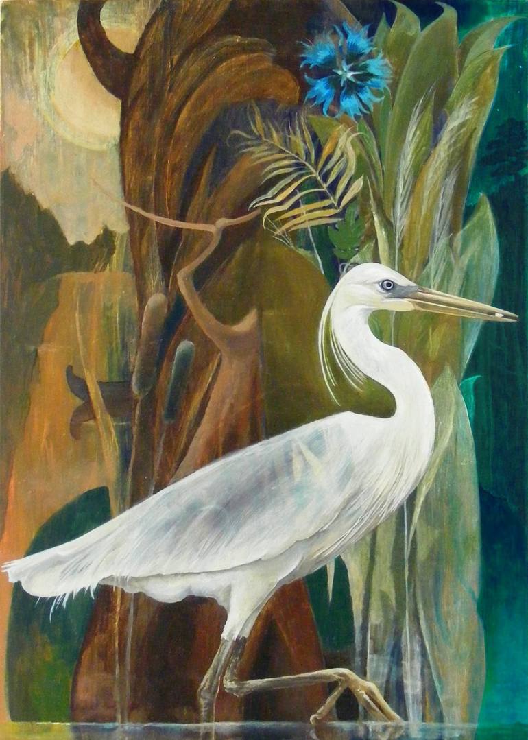 This elegant, lyrical composition, made in the Art Deco style, depicts a traditional Scandinavian totem - a white heron with a pebble in its beak. In addition to Scandinavia, the image of the egret as a good messenger has been known throughout Eurasia since antiquity. A white heron with a pebble in ...