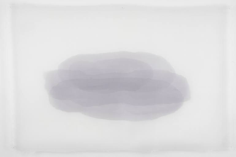 One of the series entitled Touting Clouds, using artist's own made oak gall ink on silk organza. Images constructed of painted logs as the ink is made of wood (oak gall ink). Each log is overlaid as though one carries a pile of logs in arms. The stack of them, however, resemble clouds. This artwor...