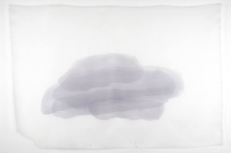 One of the series entitled Touting Clouds, using artist's own made oak gall ink on silk organza. Images constructed of painted logs as the ink is made of wood (oak gall ink). Each log is overlaid as though one carries a pile of logs in arms. The stack of them, however, resemble clouds. This artwor...