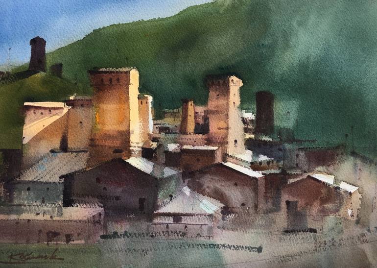 Watercolor sketch “Towers. Ushguli. Svaneti” was painted from life during my cycling plein air tour of Georgia in 2019, in Ushguli, the highest mountain settlement in the European part of the world, located at an altitude of 2200 meters above the level. In this work, a particle of air and energy ...