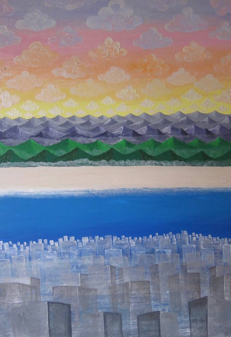 This painting is inspired by a meditation. The layers and patterns hint at multiple realities hidden beneath the surface.