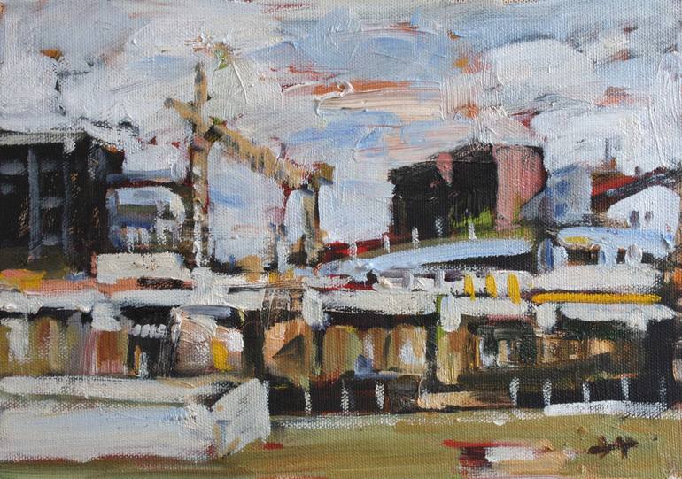 This was painted from one of the train yards in downtown Osaka, Japan. I think all the movement amidst the city of the trains is exciting. I take inspiration from painters such as Hopper, Monet, and others who look for interest around them.