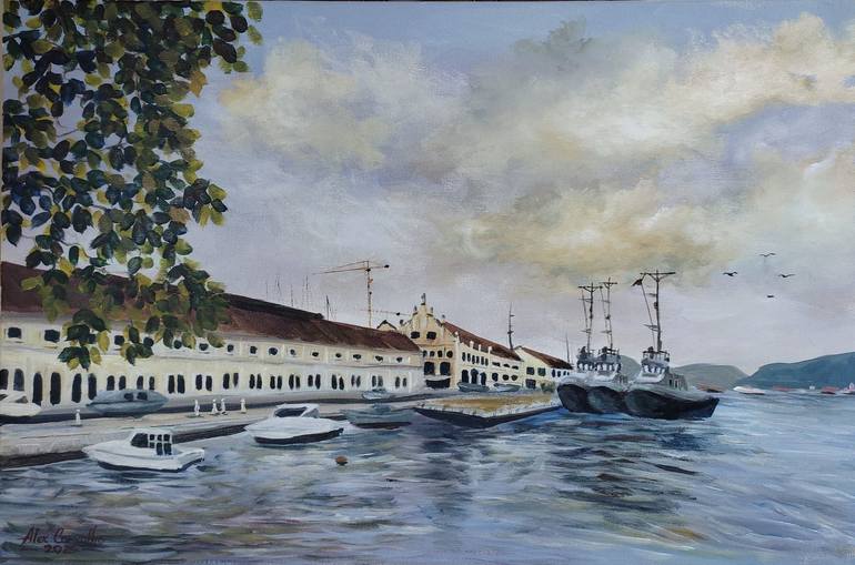 Ano de criação 2024 Dimensões 60 L × 40 A cm Tipos de arte pintura Estilo realismo Gênero paisagem marítima Materiais acrilco sobre tela Descrição da obra “Tranquilidade na Base Naval” Tradução automática Nesta composição intrigante, Alex Carvalho captura a essência pacífica do cenário marítimo, ond...