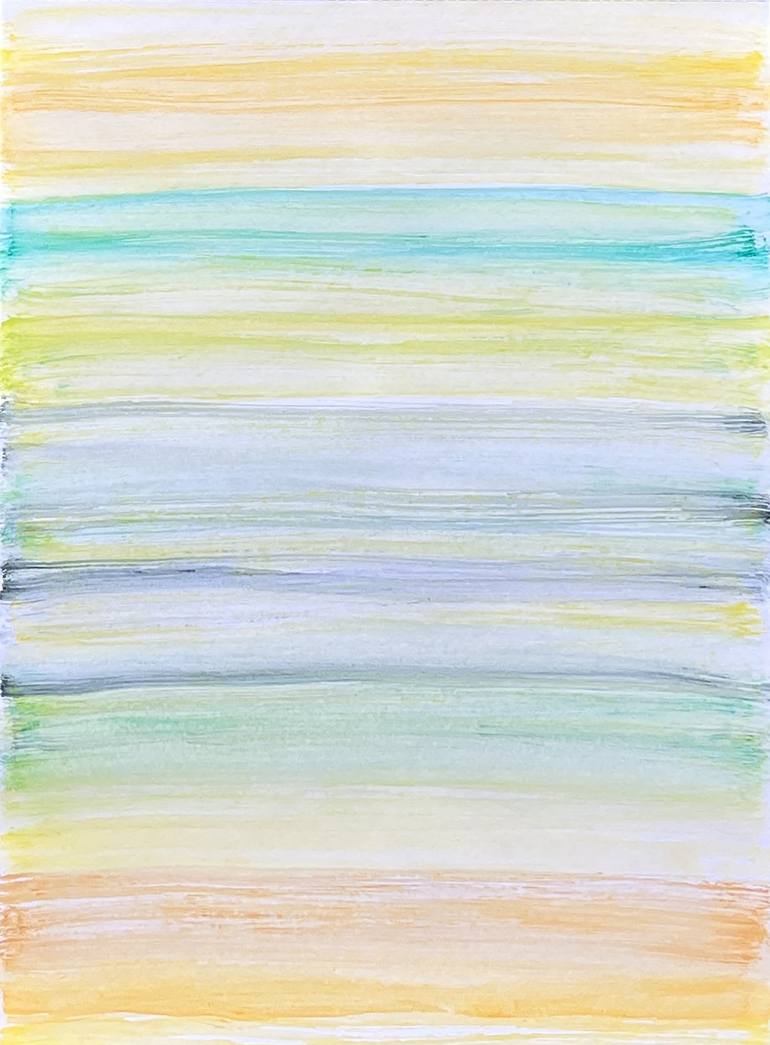 "Verdant Harmony: Fields of Tranquility" This is a captivating addition to the Tranquility series. This drawing employs solely horizontal, thick strokes to evoke a profound sense of transparency, creating a serene visual experience. The drawing is adorned with strokes of greenish and yellowish hue...