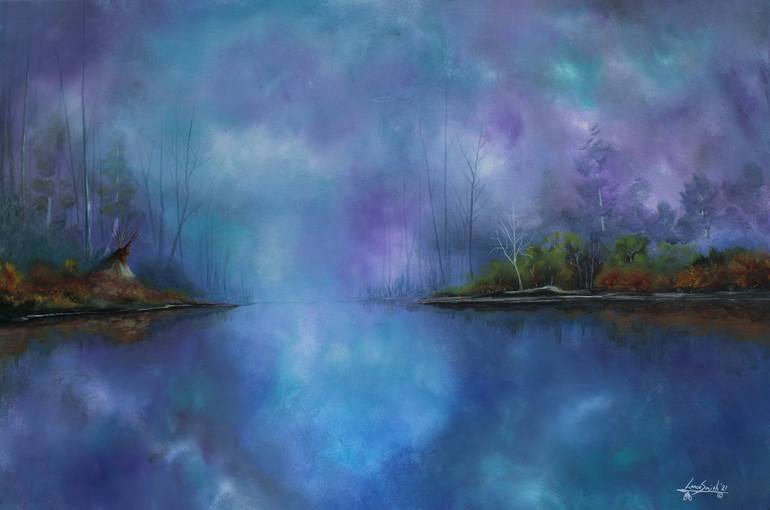 I wanted to do a painting where it made you feel anything was possible.. it made you feel relaxed ... like in a dream ..endless sky and water beautiful blues and purples