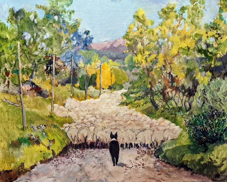 Transhumance, a dog and a destination. Oil on canvas board. Fully finished and ready for your simple or bespoke frame.