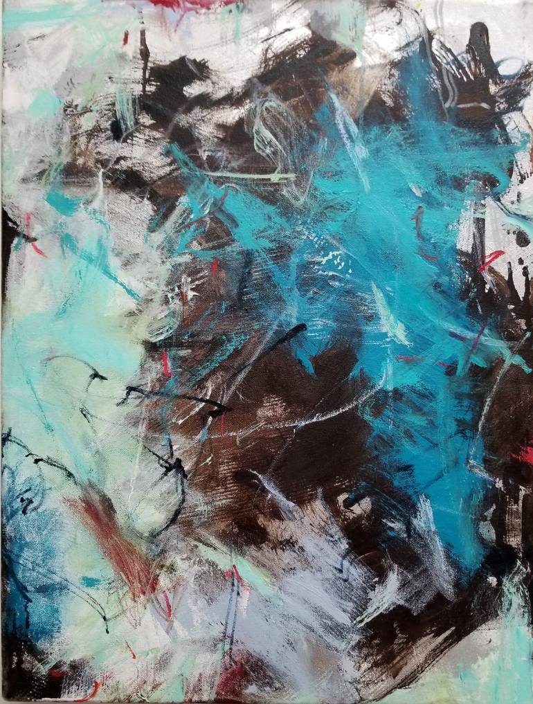 As an abstract painter I am interested in what happens in the world of a painting when serenity is invaded by a chaotic jumble of randomness. There is a moment, or a series of moments that are pivotal in the creation of a painting... perhaps the same can be said, in the creation or living of a life. In that spirit I am pouring, scraping and blotting paint, creating a kind of managed chaos. After the rush of adrenaline subsides, it is then my job to meditate on the results and work with them until the painting feels "right." I want the marks on the canvas to talk to each other, for the layers to interact, for the process of how the painting was built to be apparent.