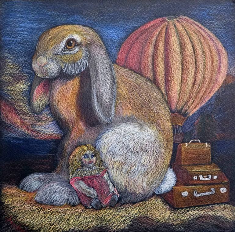 Prints available of the original watercolor pencil artwork "Travel Plans"