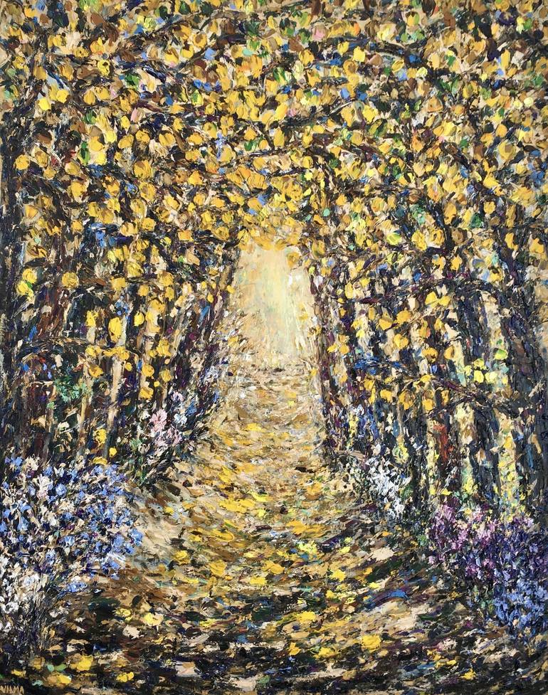 Tree Tunnel Path Impasto Oil Painting On Canvas *Title: „Dream Path“ *Size: 32"x 40" [80 x 100 cm] *Original handmade oil painting on canvas by brush and palette knife. *Made by me - Vilma Gataveckiene. This is not a copy or a print. *Signature on the front and on the back. Ready to ha...