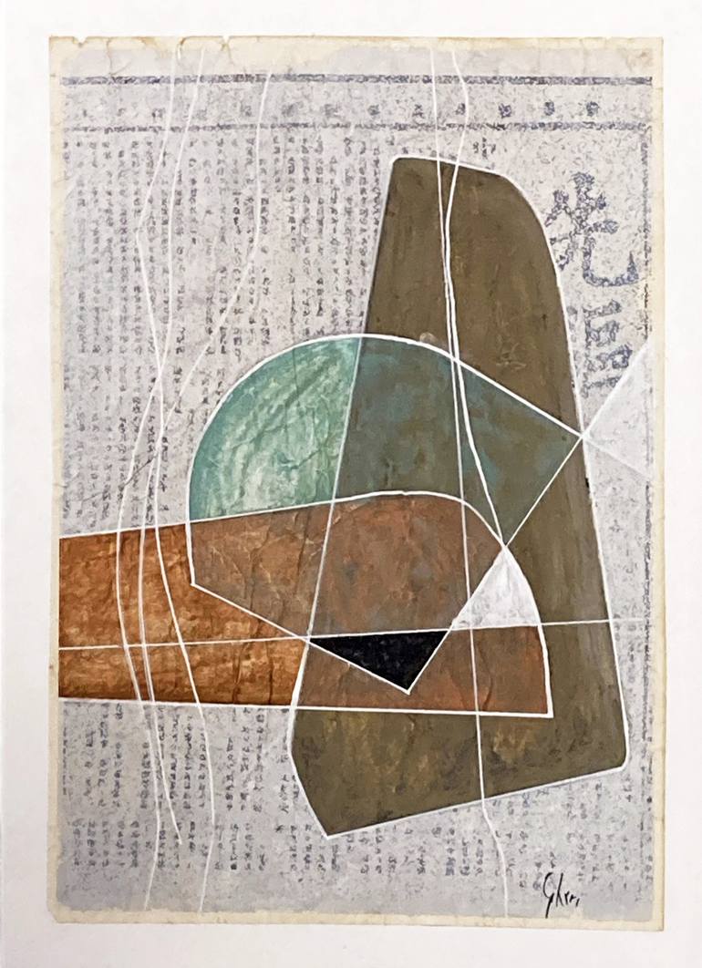 This is the first of a series called Triad, in which three masses interact and interpenetrate to create a balance of shapes and colors. Three is the perfect agreement, for me the right synthesis, although minor forms stem from the interaction of the main masses. The Chinese characters in the backgr...